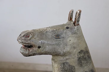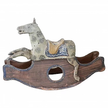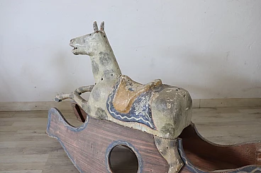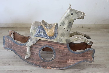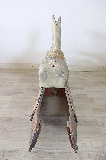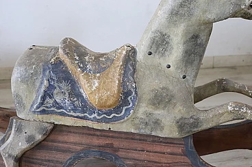 Cavallo a dondolo in legno dipinto e cartapesta, fine '800
