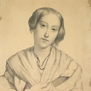 Ritratto di giovane donna, disegno a matita su carta, '800