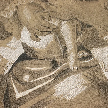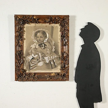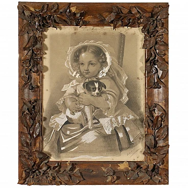 Ritratto di bambina con cagnolino, disegno a tecnica mista su carta, '800