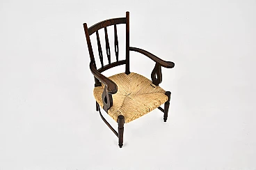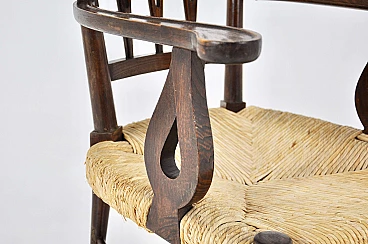 Poltrona in legno e vimini di Paolo Buffa, anni '50