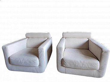 Coppia di poltrone Modern 75 in pelle bianca di Natuzzi, anni 2000