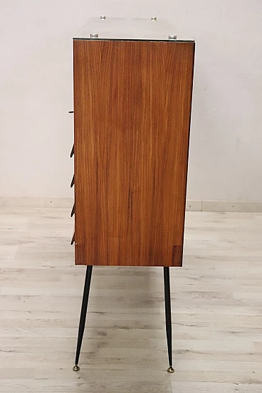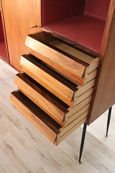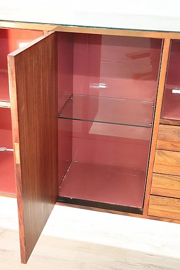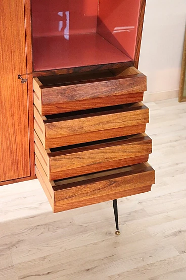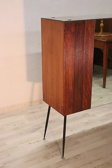 Mobile bar in palissandro, metallo, specchio e vetro, anni '60