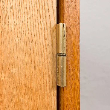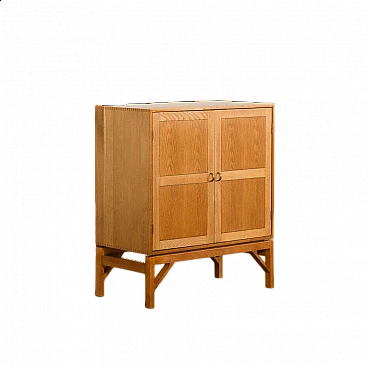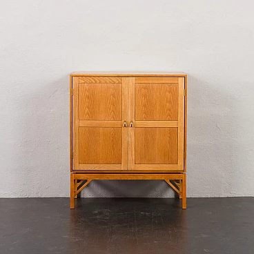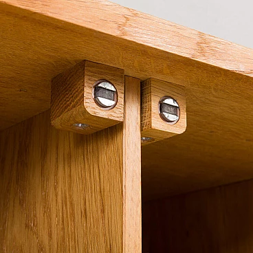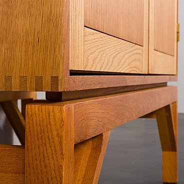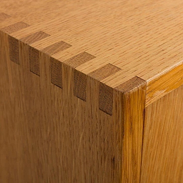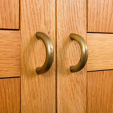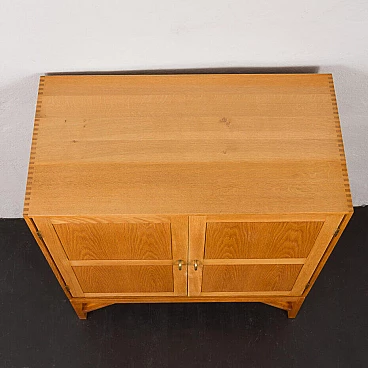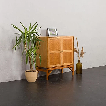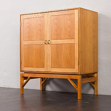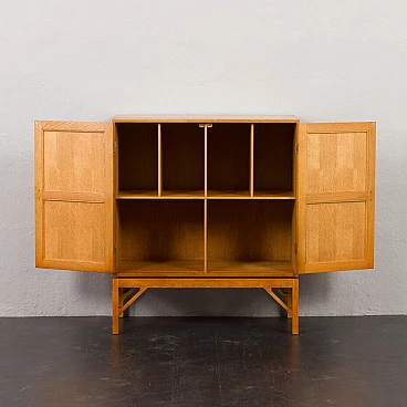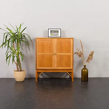 Armadio in rovere massiccio Mid-Century Modern progettato da Christen Hvidt in Danimarca negli anni Settanta per Soborg Mobelfabrik. Il mobile è realizzato in legno massiccio con i caratteristici incastri a coda di rondine, robusti e decorativi, utilizzati molto spesso dai designer danesi della metà del secolo. Il mobile presenta quattro scomparti più piccoli e due più ampi. Può essere un perfetto contenitore per dischi in vinile o riviste. Questo mobile semplice e di grande qualità è decorato con maniglie e cerniere in ottone. Arricchirà qualsiasi interno con un look da design di metà secolo. Il mobile è in ottime condizioni originali. La base è stata rifatta in legno massiccio secondo i disegni di Chriten Hvidt e Borge Mogensen dello stesso periodo.