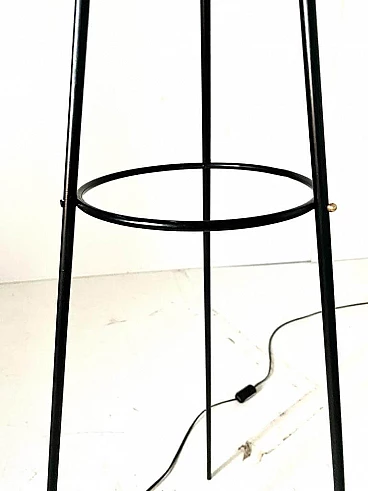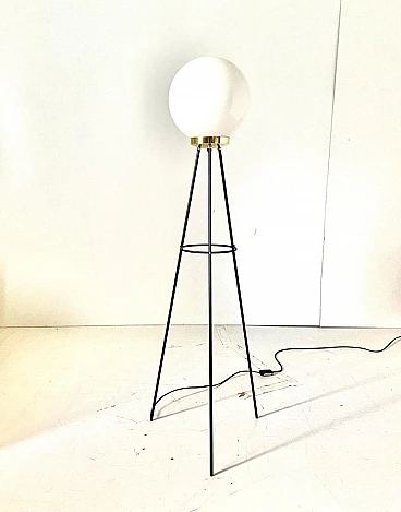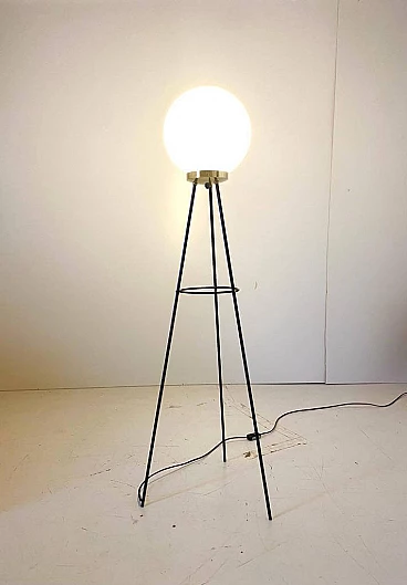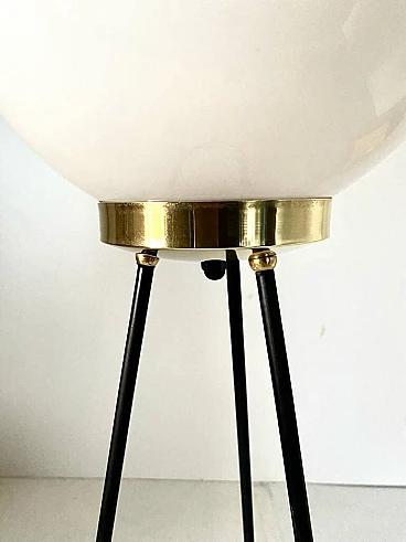 Piantana tripode in ferro, ottone e vetro opalino di Stilnovo, anni '50