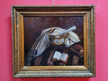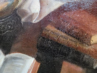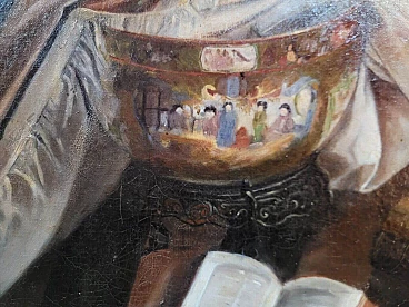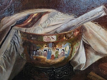 Natura morta con vaso cinese e libri, olio su tela, fine '800