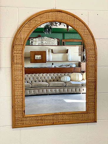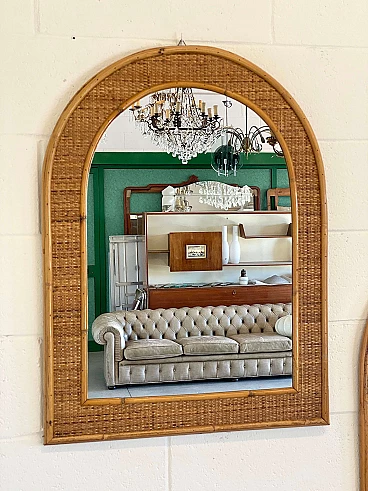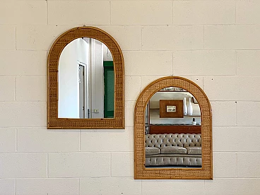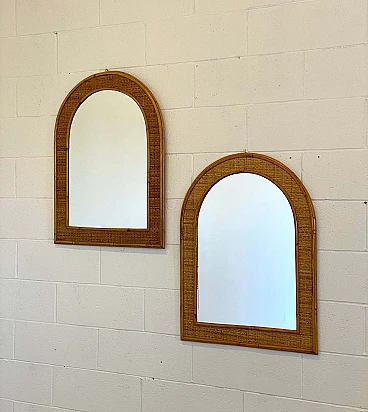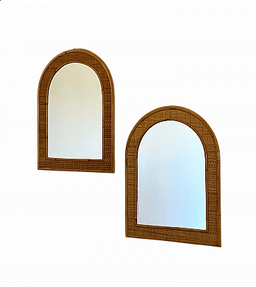 Coppia di specchiere in vimini e bambù di Dal Vera, anni '70