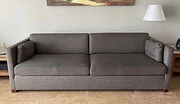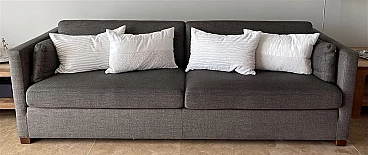 Divano imbottito in lana vergine grigia, tipo Slim, con braccioli della collezione Metro, disegnata da Paolo Piva. In ottime condizioni. Minimi segni di normale uso domestico. Seduta solida. Ben imbottito e confortevole. Nessun segno d'uso visibile. Manufatto sartoriale di eccellenza di elevata qualità, realizzato dalla nota azienda austriaca Wittmann fondata nel 1896 a Etsdorf, in Bassa Austria. Si possono vedere dal vivo i bellissimi prodotti nello show room a Vienna (SecessionA-1010 Vienna, Friedrichstraße 10). L’azienda produce, tra i tanti modelli di imbottiti a catalogo, la famosa serie Kubus di Josef Hoffmann, dal 1910. Acquistato da Wittmann, presso il negozio di Vienna a 7850 euro.