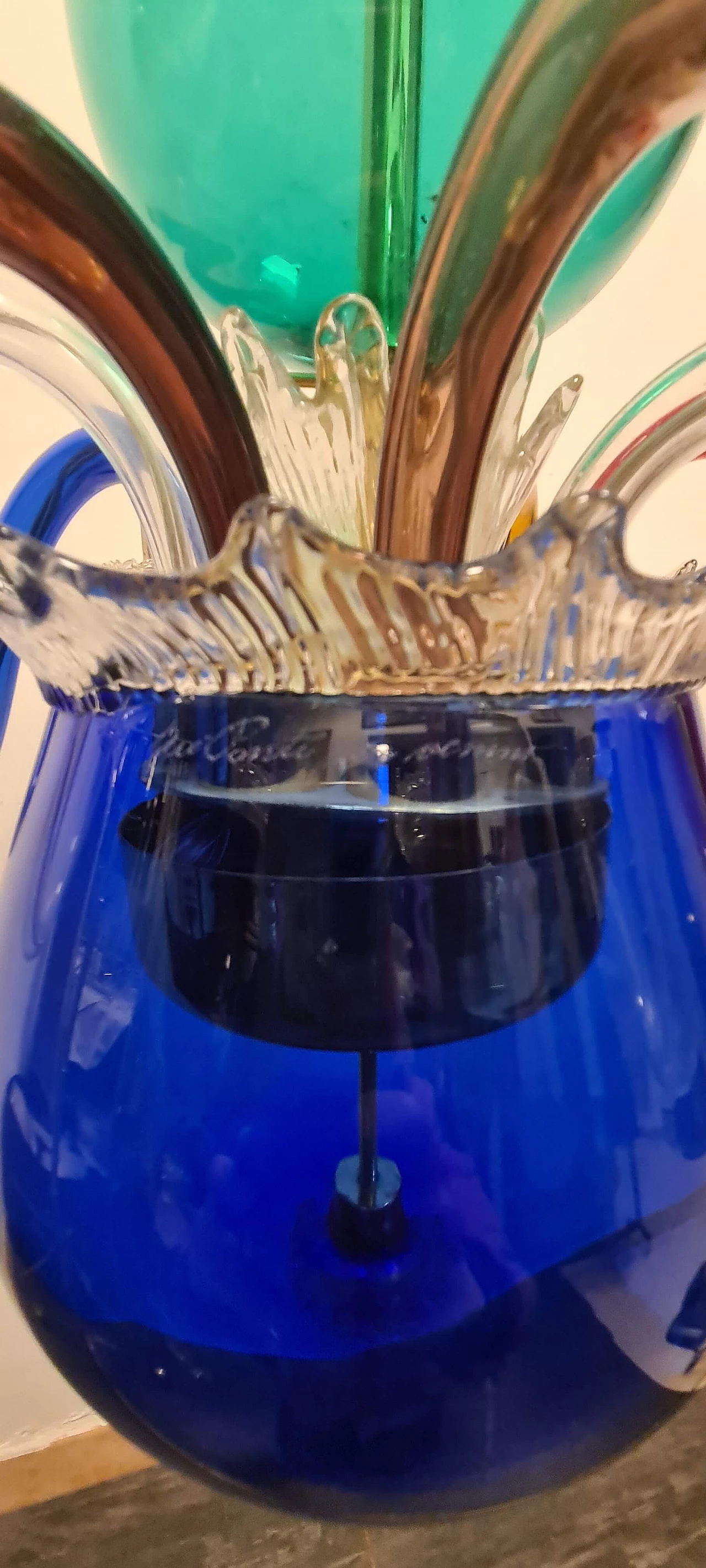 Il lampadario presenta sulla boccia blu la scritta ad incisione "Gio Ponti per Venini" .