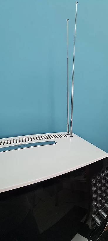 Sotto all'altoparlante si trovano i comandi. Mario Bellini è uno dei maggiori designer italiani, vincitore di otto compassi d'oro e altri numerosi riconoscimenti. Fu direttore di Domus dal 1979 al 2019. Per la Brionvega disegna anche il radiofonografo Totem ma collaboro per aziende coma la Oivetti, la C&B e tantissime altre. Brionvega è un marchio italiano di elettronica di consumo che ha rivoluzionato l'hi-tech dal punto di vista del design.