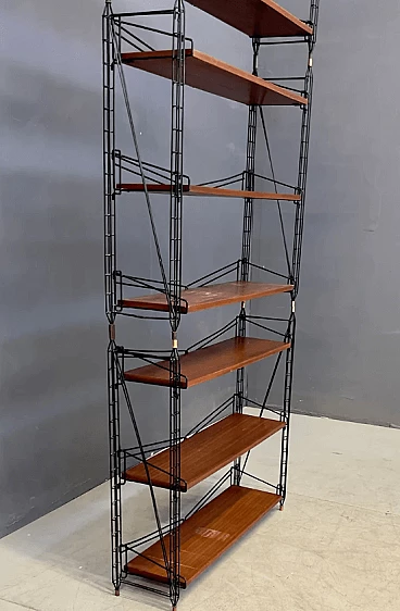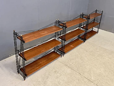 Libreria modulare in legno e metallo, anni '60