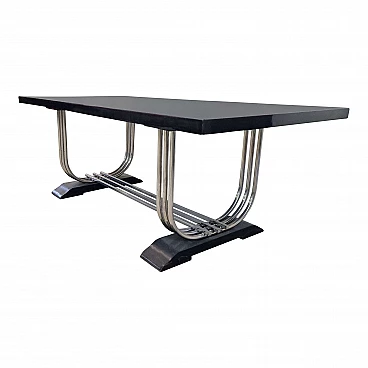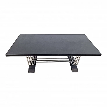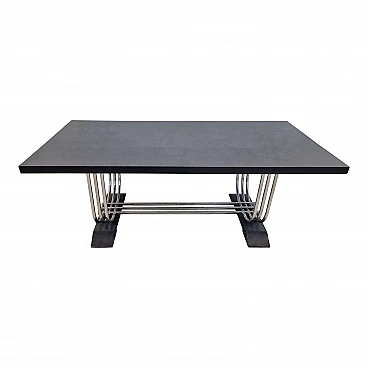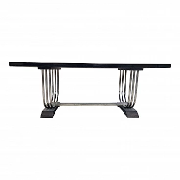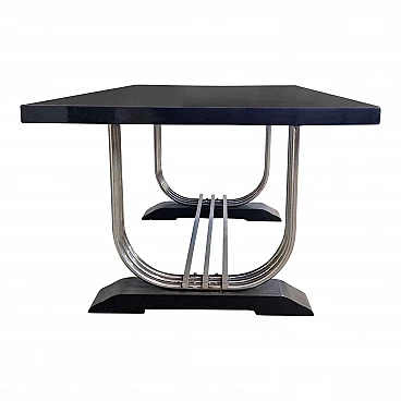 Tavolo stile Art Déco in legno laccato e acciaio cromato, anni '80