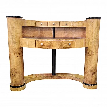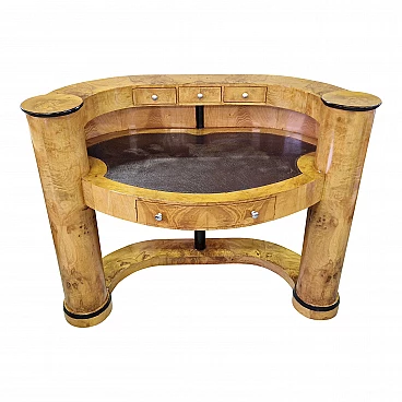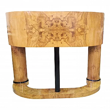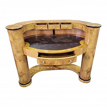 Scrivania stile Art Déco in radica di betulla ed ecopelle, anni '80
