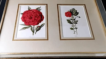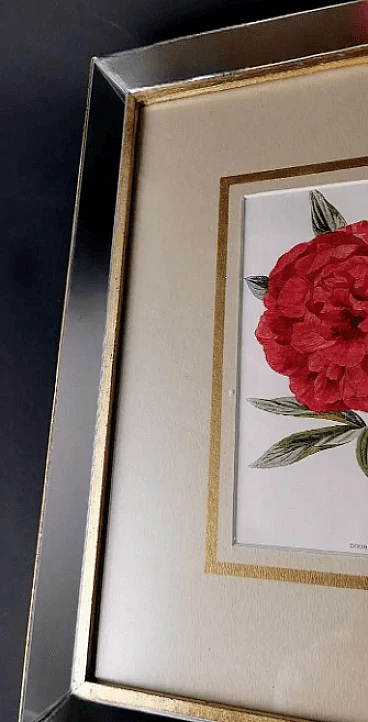Cornice a specchio con stampe cromolitografiche inglesi con fiori, inizio '900