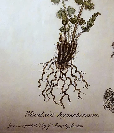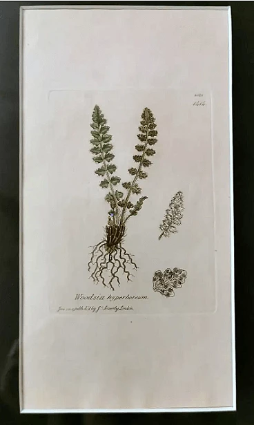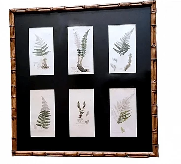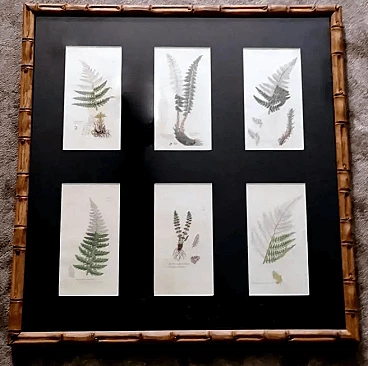 Cornice in finto bambù con sei stampe botaniche inglesi di James Sowerby, '800