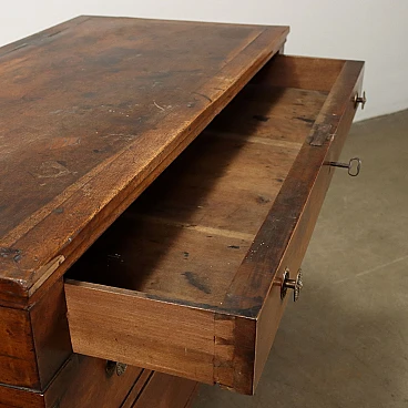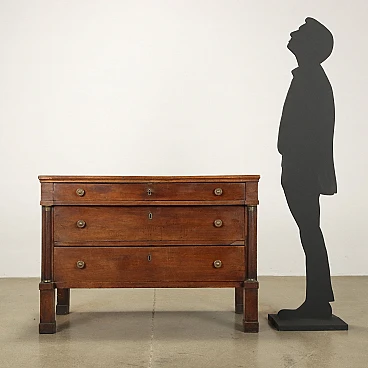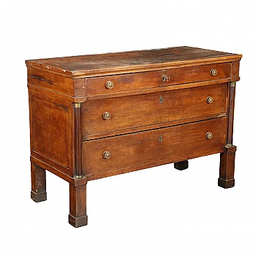 Cassettone Impero in noce con montanti decorati a semi colonne, primo quarto '800