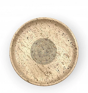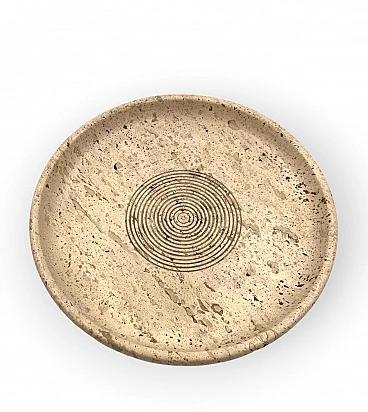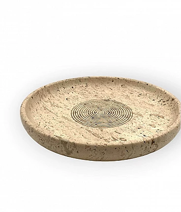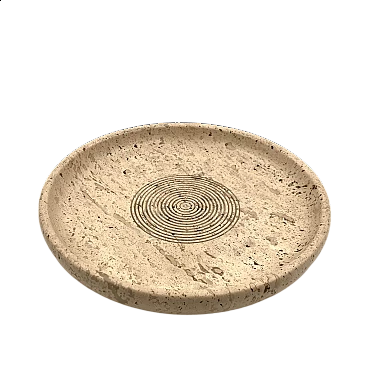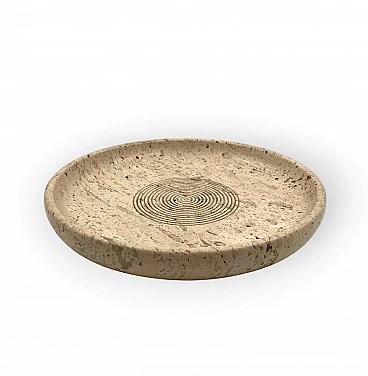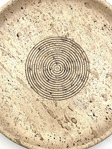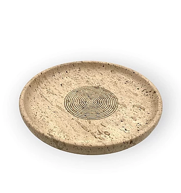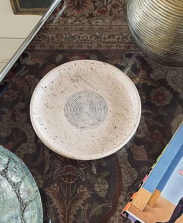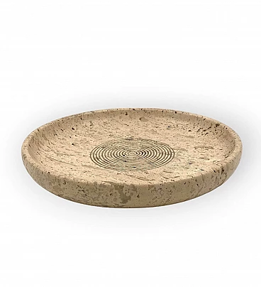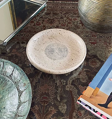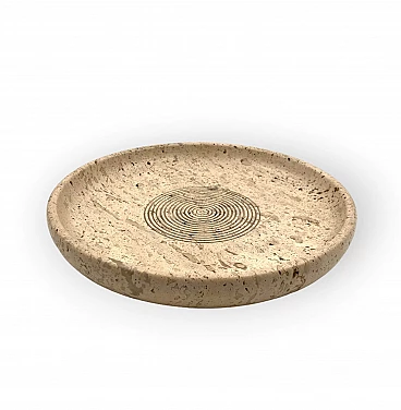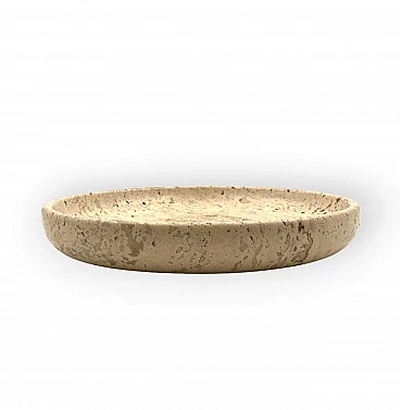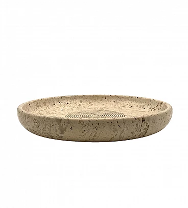 Vide poche o centrotavola in travertino, prodotto da CN Cerri Nestore, Italia, anni '70. H 4,5 cm, diam. 29 cm. Condizioni eccellenti, coerenti con l'età e l'uso.