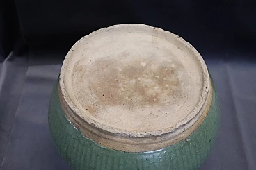 Bellissimo vaso cinese in gres Celadon, probabilmente Longquan, con decorazione scanalata realizzato durante la dinastia Ming, tra il XIV e il XVI secolo. Caratterizzato da una forma circolare a balaustra con bordo aperto ed estroflesso e piede basso. È decorato con scanalature verticali o nervature modellate nella metà inferiore. La base è concava e profonda. È di colore verde con smalto Celadon. Le parti non smaltate hanno un colore marrone terracotta sull'orlo, sulla parte inferiore del corpo e sul bordo del piede. Non è marcato ma per pezzi simili si veda il libro Chinese Ceramics di He Li pubblicato da Thames & Hudson, 1996 (pagine 164-184). Prezzo trattabile.