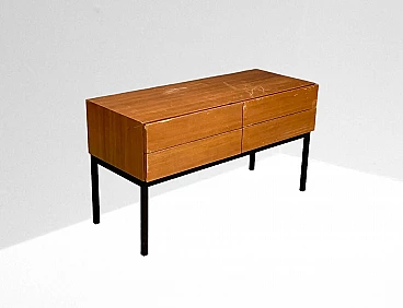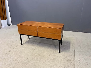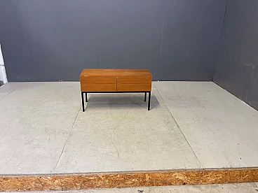 Cassettiera scandinava a due cassetti in teak e ferro verniciato, anni '60