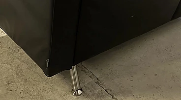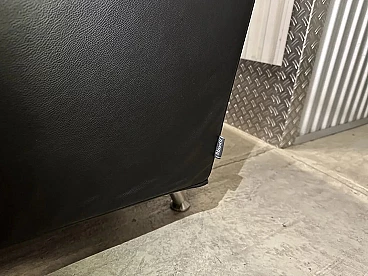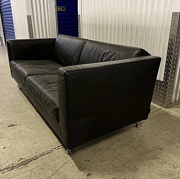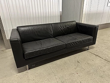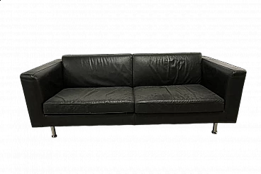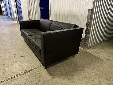 Divano Copenhagen One da 2,5 posti di Minotti in alluminio e pelle nera. In buonissime condizioni con minime tracce di utilizzo (piccolissimi segni superficiali qua e là sulla pelle). Divano elegante con cuciture a vista. Rivestimento in morbidissima pelle di concia fiorentina di colore nero. I cuscini della parte orizzontale (zona di seduta) sono rimovibili. Lo schienale è fisso, quindi non si abbassa. Poggia su gambe in alluminio con piedini inclinabili con supporto a LEM in modo da essere sempre stabile. Divano dalla elevata ergonomia, molto comodo.