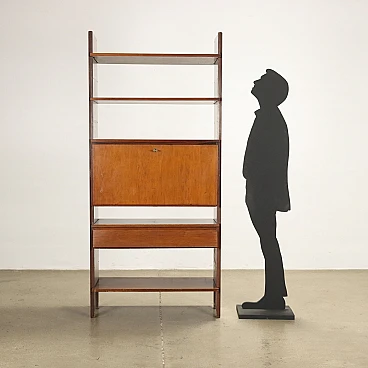 Libreria in legno impiallacciato noce tanganica tinto, anni '60