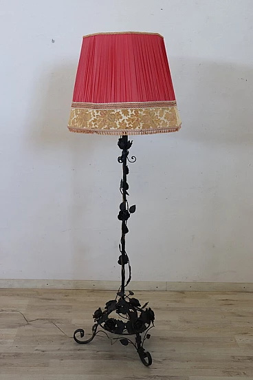 Lampada da terra Liberty in ferro con decori floreali, inizio '900