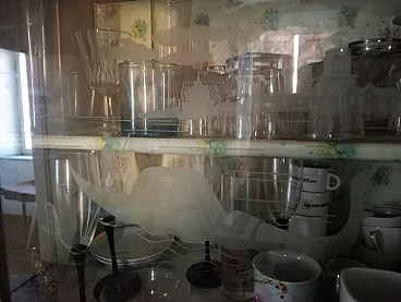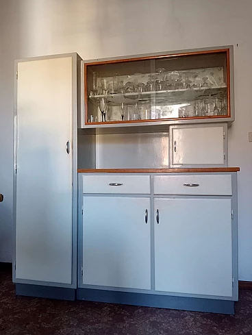 Credenza in legno e vetro con veduta di Venezia, anni '50