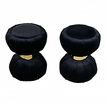 Coppia di pouf a clessidra in velluto nero, anni '90
