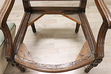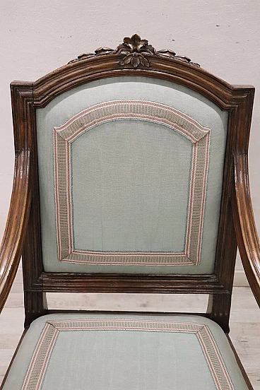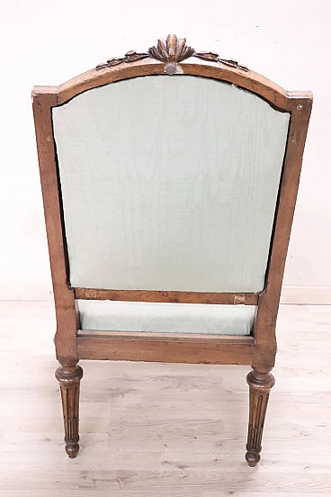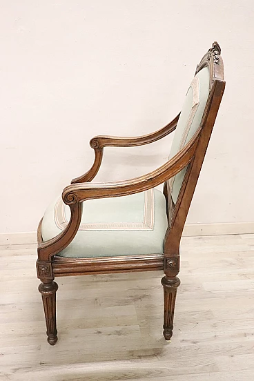 Poltrona Luigi XVI in noce massello con seduta e schienale imbottiti, '700