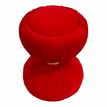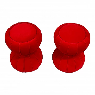 Coppia di pouf tondi a clessidra in velluto rosso, anni '90