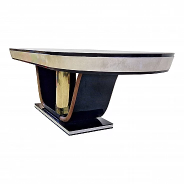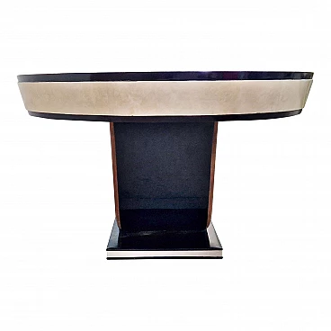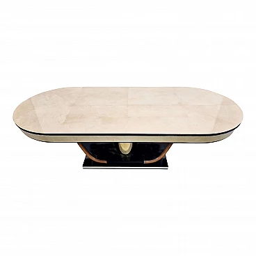 Tavolo ovale in legno laccato nero con piano in pergamena naturale, anni '90