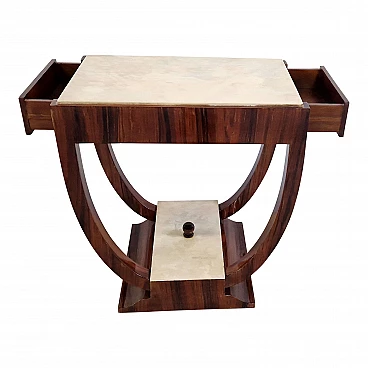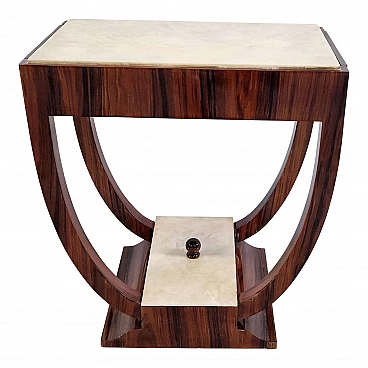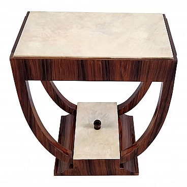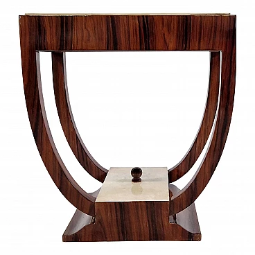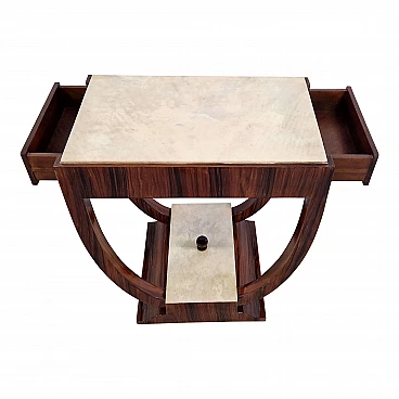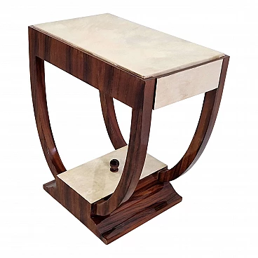 Tavolino stile Art Déco in legno impiallacciato palissandro e pergamena, anni '80