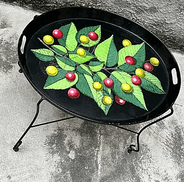 Vassoio in metallo serigrafato con Piedistallo di Piero Fornasetti, anni '50