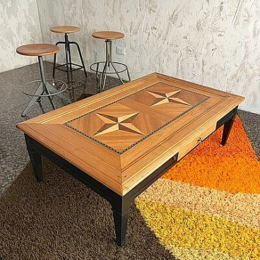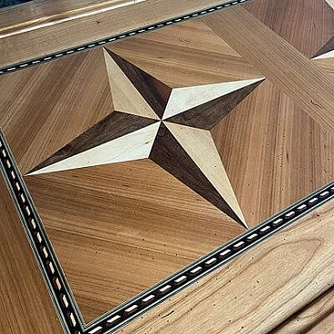 Tavolino stile Direttorio in legno con intarsio di Richelieu, anni '90