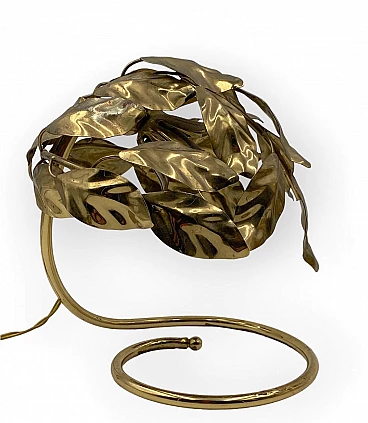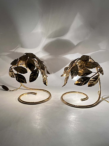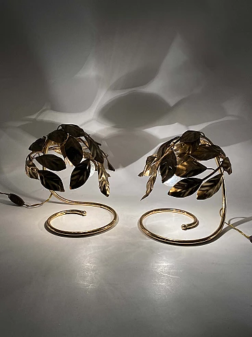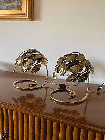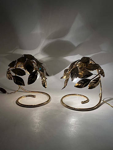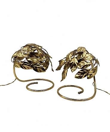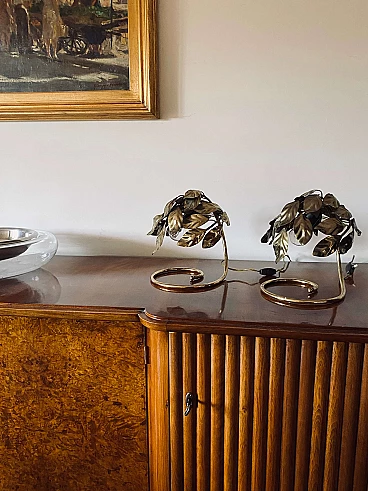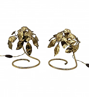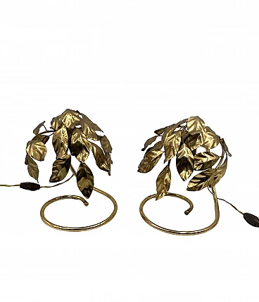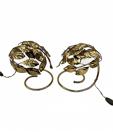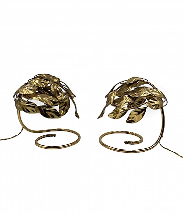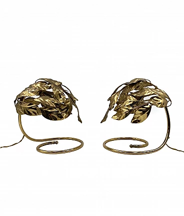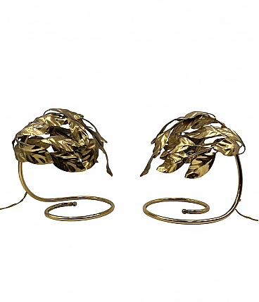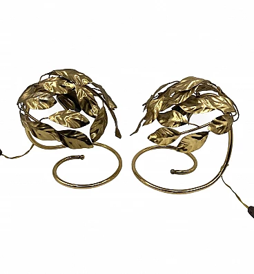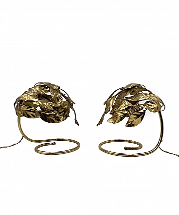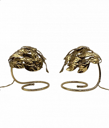 Coppia di lampade da tavolo in ottone con foglie di Bottega Gadda, anni '70