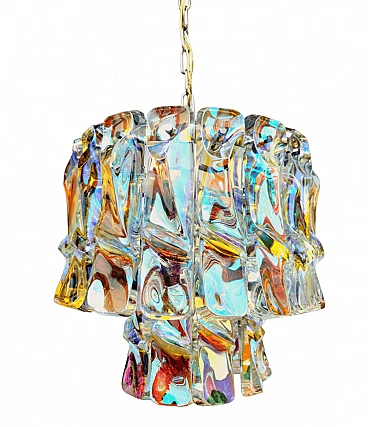 Lampadario in vetro di Murano iridescente attribuito a Vistosi, anni '60