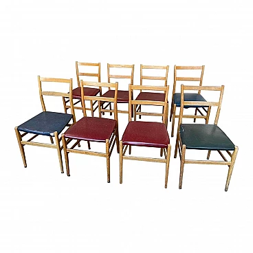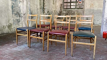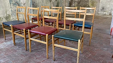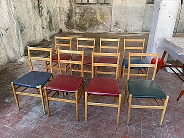Gio Ponti non ha bisogno di presentazioni: è stato probabilmente la personalità più influente del design e dell'architettura italiana per quasi tre decenni, dagli anni Cinquanta agli anni Settanta. Nella sua lunga carriera è riuscito a lasciare un segno indimenticabile su mobili, stoviglie, architettura e decorazione d'interni. Tra le sue opere più famose, spicca la Sedia 646 disegnata per Cassina e giustamente chiamata "Leggera", dato il suo peso modesto. Tuttavia, la Leggera rimane più robusta e un po' più pesante della sua sorella più famosa, la 699 "Superleggera", che è così leggera che quasi ci si preoccupa di sedersi. Siamo lieti di offrire queste otto sedie originali, prodotte e consegnate negli anni Sessanta e conservate nel loro rivestimento originale in pelle. Consigliamo di rivestirli prima dell'uso e possiamo offrire questo servizio sia con il tessuto dell'acquirente che con quello dei nostri fornitori. Le condizioni generali sono buone e le sedie sono intatte, conservate nelle condizioni originali. In allegato troverai due foto singole per ogni sedia; ne sono disponibili molte altre che non potevano essere inserite nell'inserzione e che possiamo condividere con i potenziali acquirenti. Prezzo per sedia.