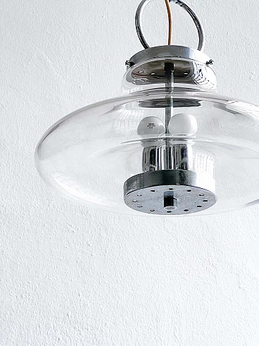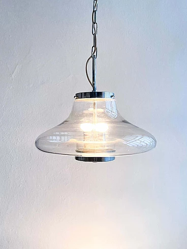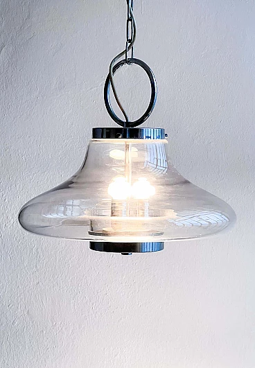 Lampadario Space Age in vetro in stile Mazzega, anni '70
