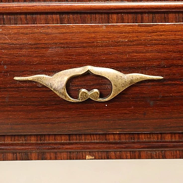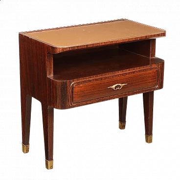 Comodino in legno impiallacciato legno esotico con cassetto e vano a giorno, anni '50