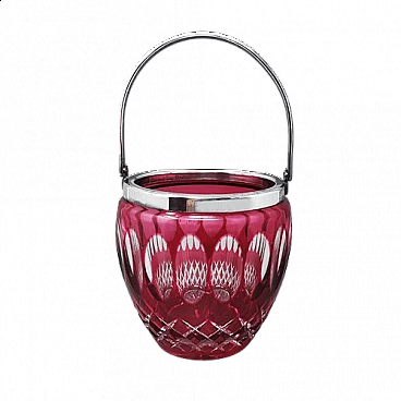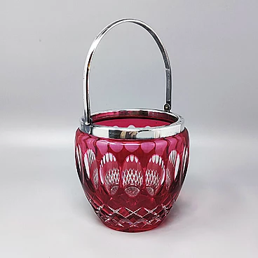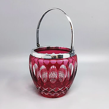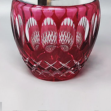 Secchiello per ghiaccio in cristallo di Boemia tagliato rosso, anni '60