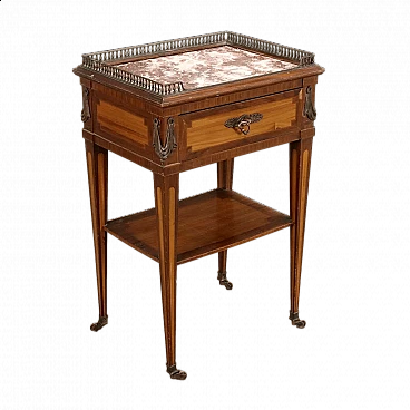 Comodino in legno intarsiato con piano in marmo Macchia Vecchia