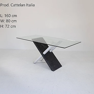 Tavolo in marmo e vetro di Cattelan, anni '80