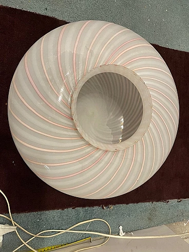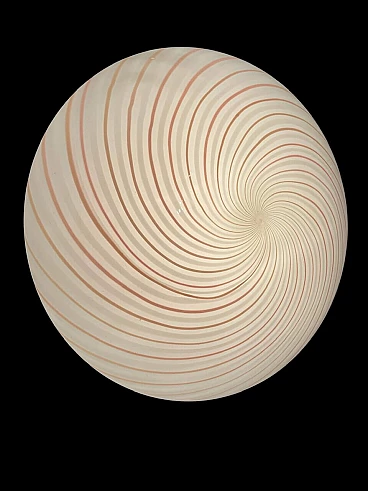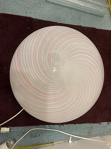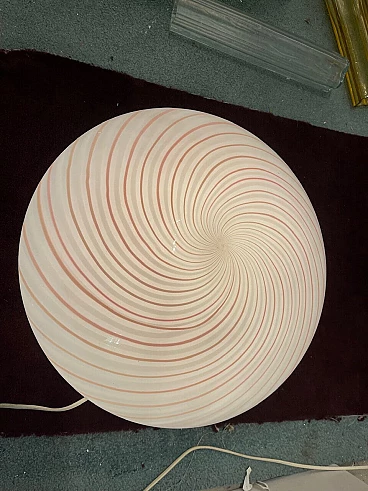 Plafoniera in vetro di Murano con spirale rosa di Paolo Venini, anni '70