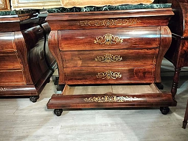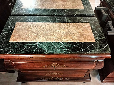 Coppia di comò spagnoli in palissandro con marmi verdi, '800
