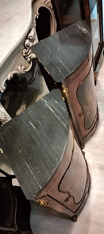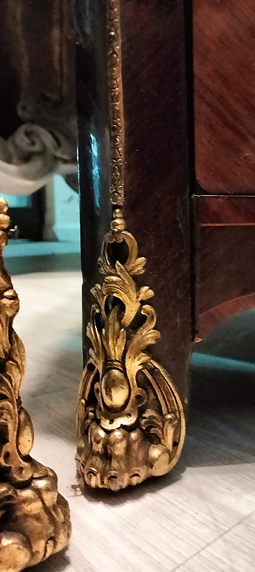 Coppia di angoliere Napoleone III in legno di rosa, ebano e marmo, '800