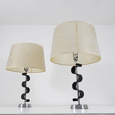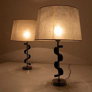 Coppia di lampade da tavolo in metallo cromato e verniciato, anni '50