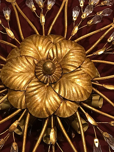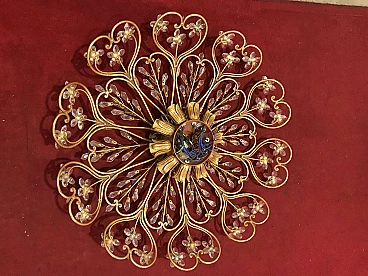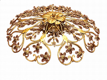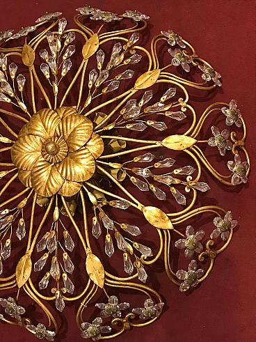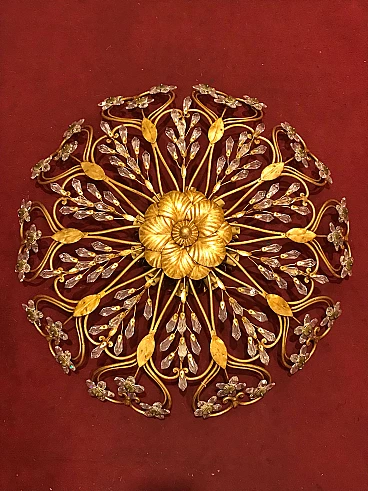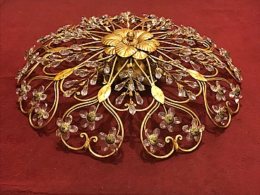 Lampada da soffitto in ottone dorato e cristalli Swarovski, anni '90