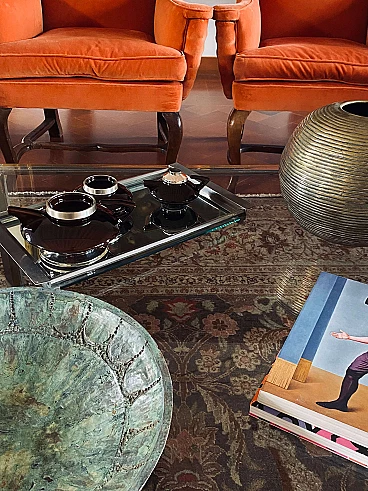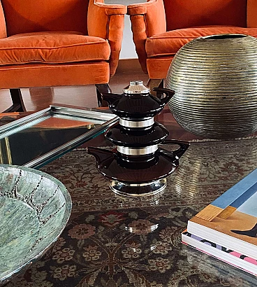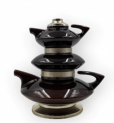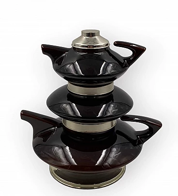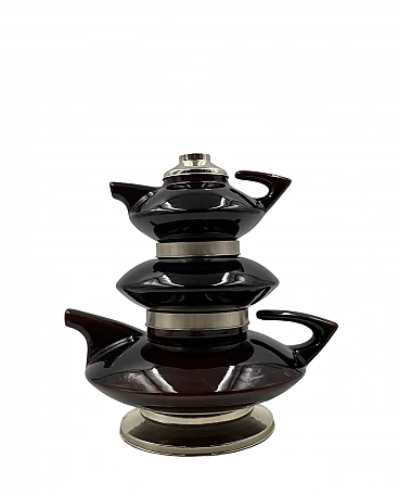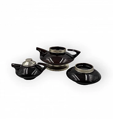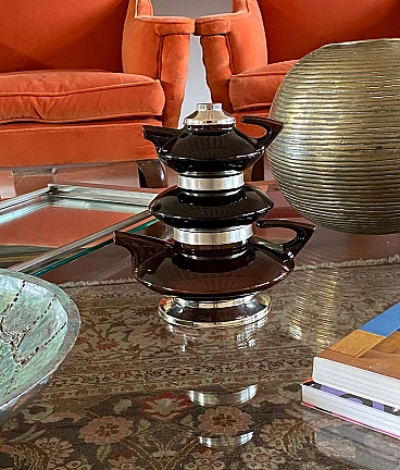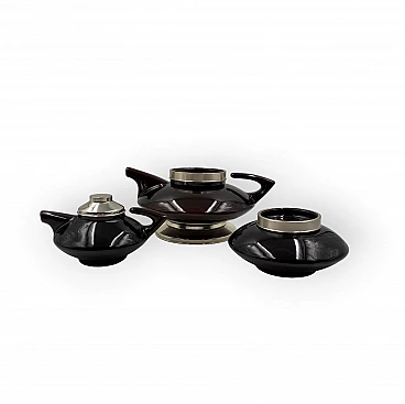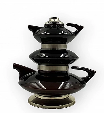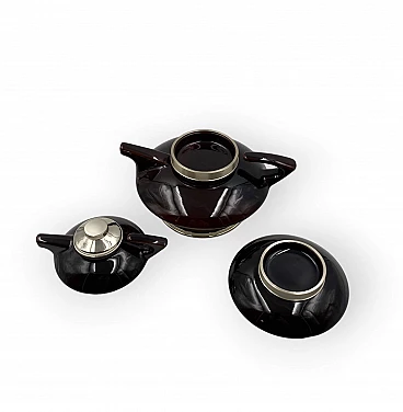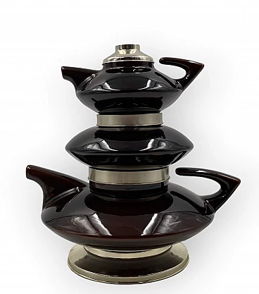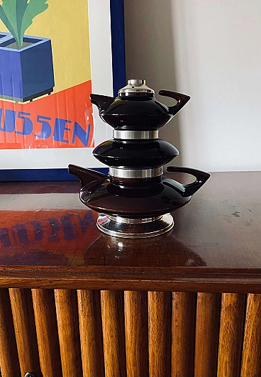 Servizio da tè impilabile in porcellana e metallo di SC3, anni '70