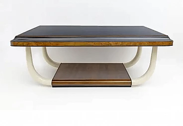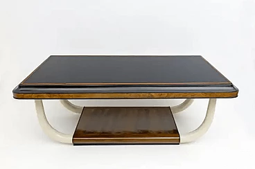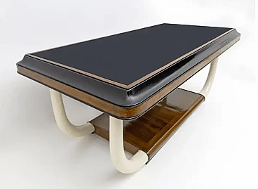 Tavolo in noce e vetro con gambe a zampa di elefante, anni '30