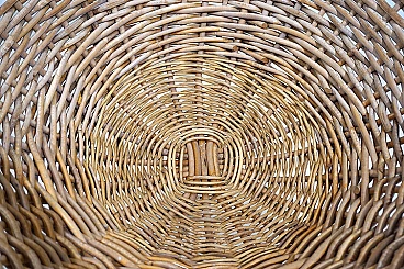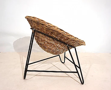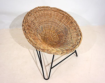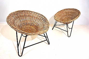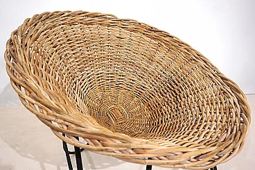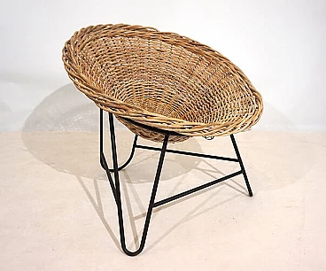 Coppia di sedie in rattan in buone condizioni. La struttura in vimini non presenta segni di danneggiamento ed è solida; la struttura in metallo rivestita in plastica nera presenta alcuni distacchi del rivestimento in plastica e segni di usura. Le poltrone hanno sviluppato una bella patina nel corso degli anni. La scocca a forma di vaso affusolato offre una seduta confortevole. Queste poltrone sono state progettate e prodotte nella Germania dell'Est negli anni '60 e sono un classico del design tedesco.