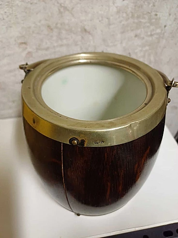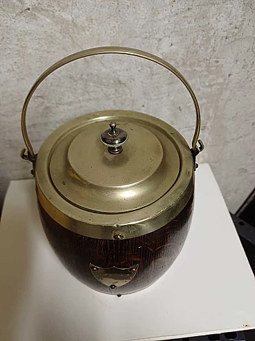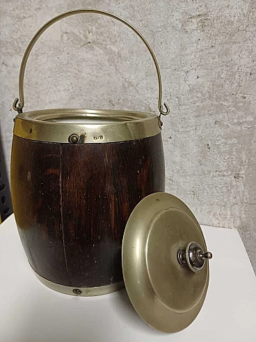 Secchiello per ghiaccio inglese in legno e metallo, anni '30